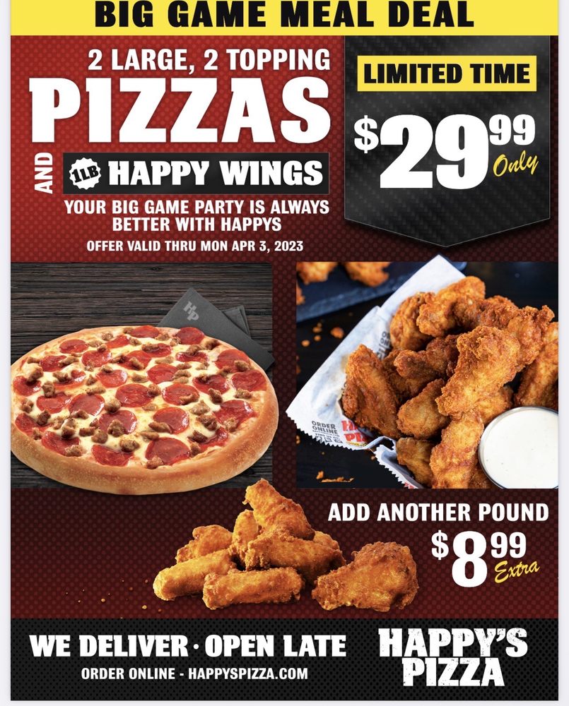 2 Large 2-Topping Pizzas and 1 lb. Wings Deal